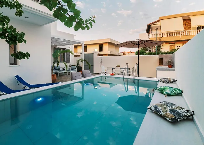 Koskinou Escape Villa dysponuje słonecznym patio z widokiem na basen oraz sezonowym basenem zewnętrznym.